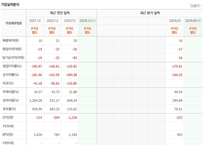 재무상태는 그렇게 좋은 편은 아닙니다. 3년 연속 당기순이익에서 적자를 기록하고 있습니다. 올해 1분기도 적자를 기록했습니다.