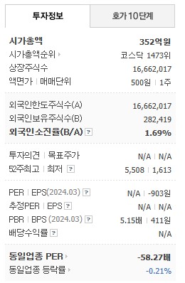 현재 주가는 2,115원으로 전일 대비 29.99% 상승한 상태입니다. 1년간의 주가 흐름을 보면, 상승과 하락을 반복하면서도 전반적인 하락 추세를 보이고 있습니다. 주가 변동성이 크기 때문에 신중을 기할 필요가 있습니다.