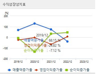 매출액이 2021년에 비해 2022년에 감소하였으나, 2023년에 다시 증가하는 추세를 보이고 있습니다. 그러나 영업이익과 당기순이익은 여전히 적자를 기록하고 있어, 수익성 개선이 필요한 상황입니다.