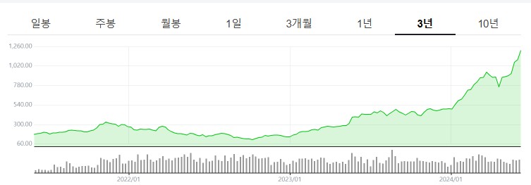 엔비디아 주가는 최근 3년간 크게 상승했습니다. 2023년 8월 52주 최고가는 125.59달러로 기록되었으며, 2022년 1월 52주 최저가는 28.150달러였습니다. 주가는 2023년 상반기 큰 폭으로 상승한 후, 현재는 1,180.22달러로 전일 대비 하락했습니다. 거래량은 41,238,580주로 활동적입니다. 이러한 주가 추이를 보면 상승 추세에 있으며, 기술적 분석상으로는 긍정적인 방향으로 나아가고 있습니다.
