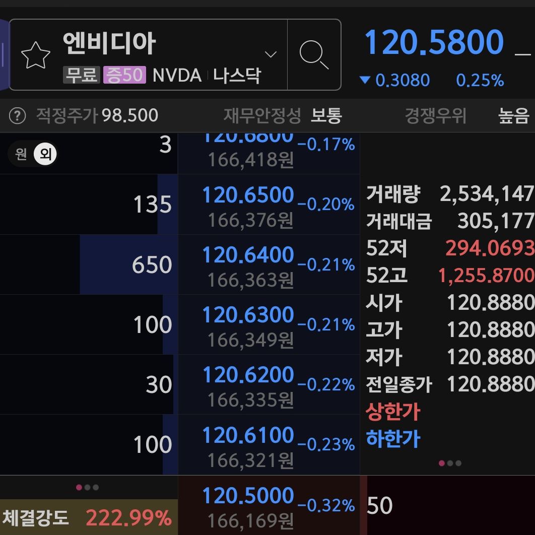지금 프리장 보면 엔비디아 주가가 이상합니다. 120달러?