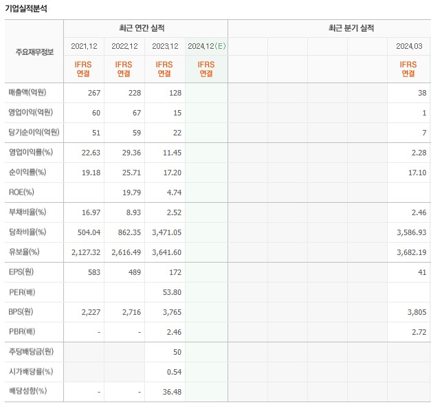 전반적인 재무 건전성은 양호하며, 부채비율이 낮아 재무 안정성이 높은 편입니다. 주가의 변동성이 큰 만큼, 주의가 필요합니다.
