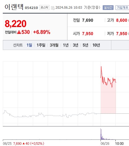 이랜텍 주가 6월26일 수요일 장 초반부터 높은 상승율을 기록하고 있는데요. 어떤 이슈가 있는걸까요?