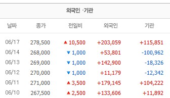 최근 상승 요인을 보면 수급이 압도적으로 좋습니다. 특히 외국인들이 쓸어담고 있네요.