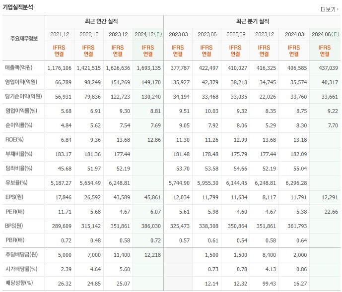 당기순이익 역시 2021년 5,693억 원에서 2023년 12,272억 원으로 큰 폭의 증가세를 보였습니다. 이러한 재무적 성과는 경영 안정성과 성장 가능성을 보여줍니다.