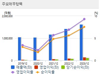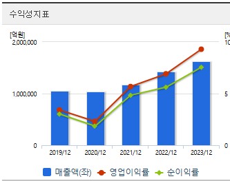 최근 3년간 연간 매출액을 보면, 2021년 117,610억 원에서 2022년 142,151억 원으로 증가했으며, 2023년에는 162,636억 원으로 꾸준히 성장세를 이어가고 있습니다.