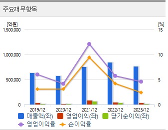최근 3년간 재무 실적을 분석해보면, 영업이익은 2021년 9조 2,381억 원, 2022년 4조 8,501억 원, 2023년 3조 5,314억 원으로 감소하는 추세를 보이고 있습니다. 당기순이익 역시 2021년 7조 1,959억 원, 2022년 5조 5,605억 원, 2023년 2조 3,158억 원으로 나타났습니다. 이는 글로벌 경기 둔화와 철강 수요 감소 등의 외부 요인이 영향을 미친 것으로 보입니다.